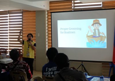 Mr. Arnulfo A. Gutierrez highlights the importance of personal grooming and includes practical activities to help boatmen present themselves professionally. On the other hand, Ms. Merjulyn P. Atiga discussed the proper attire at work, and participants learned about appropriate work attire, emphasizing the significance of dressing suitably to enhance their professional image.