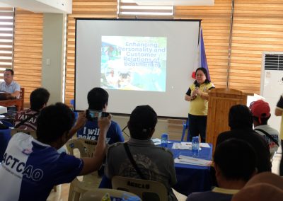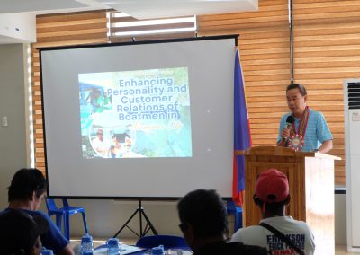 Following is the talk on the proper way to deal with customers; Dr. Pauleen Mae N. Camba provided valuable insights into effective customer service techniques, helping boatmen improve their interactions with clients.