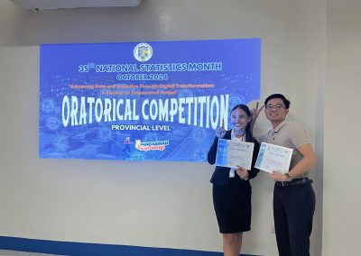 Participants from Pangasinan State University have once again brought honor to the institution as PSU-Alaminos City Campus secured 1stRunner-Up in the recently concluded 35th National Statistics Month Celebration, Oratorical, and STATIKTOK Provincial Competitions Tertiary Level. The competitions were held today, October 11, 2024, at the PESO Conference Room for Oratorical Competition and PPDO Conference, Malong Building, Lingayen, Pangasinan, for the STATIKTOK Contest.