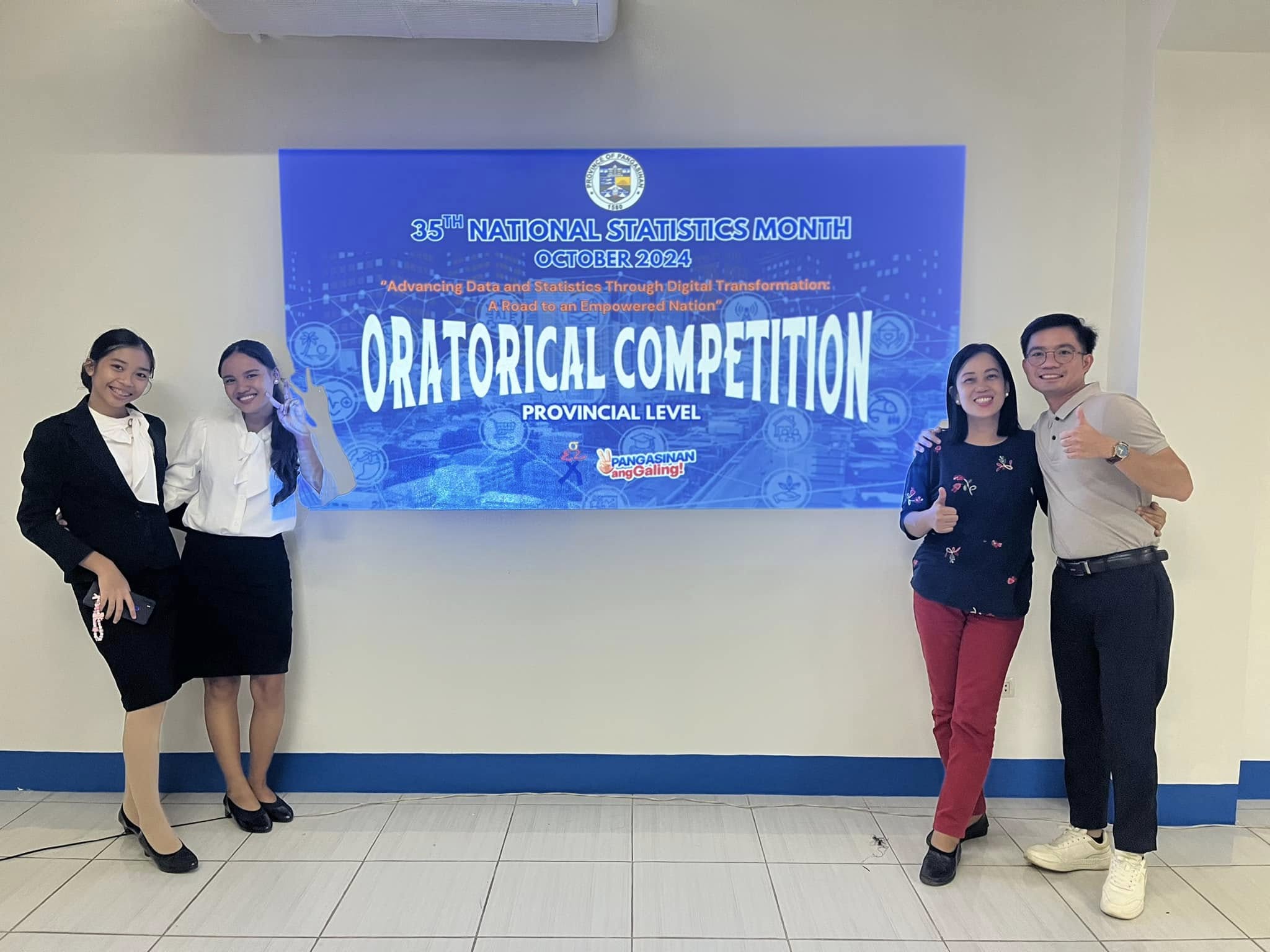 Participants from Pangasinan State University have once again brought honor to the institution as PSU-Alaminos City Campus secured 1stRunner-Up in the recently concluded 35th National Statistics Month Celebration, Oratorical, and STATIKTOK Provincial Competitions Tertiary Level. The competitions were held today, October 11, 2024, at the PESO Conference Room for Oratorical Competition and PPDO Conference, Malong Building, Lingayen, Pangasinan, for the STATIKTOK Contest.