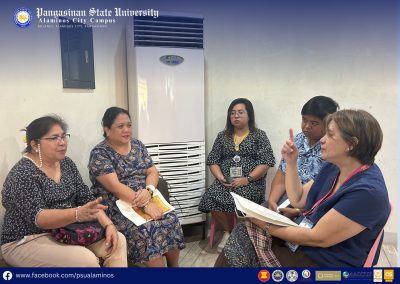 The delegation from the PSU Alaminos City Campus was headed by Campus Executive Director Dr. Rosario DL Valencerina, with Dr. Jocelyn De Vera, the Campus Extension Services Coordinator, and esteemed members of the campus officials, namely, Dr. Carlo Genster Camposagrado, Dean of the College of Business & Technology, Dr. Chenรฉe Marie Cacho, Chairperson of Secondary and Professional Education Department, Dr. Pauleen N. Camba, Chair of Hospitality & Tourism Management, Mrs. Shyeleen N. Tugas, Chair of Business Administration & Management, and Ms. Zara Jane B. Annudin, Coordinator of Gender & Development.